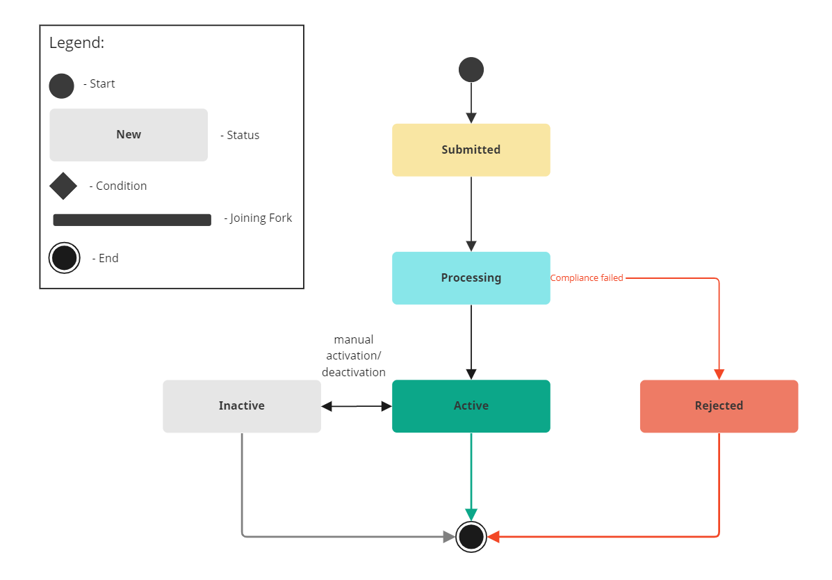 At this point, if Compliance fails the Payment Address it will go into a Rejected status. Otherwise the Payment Address will go into Active status.