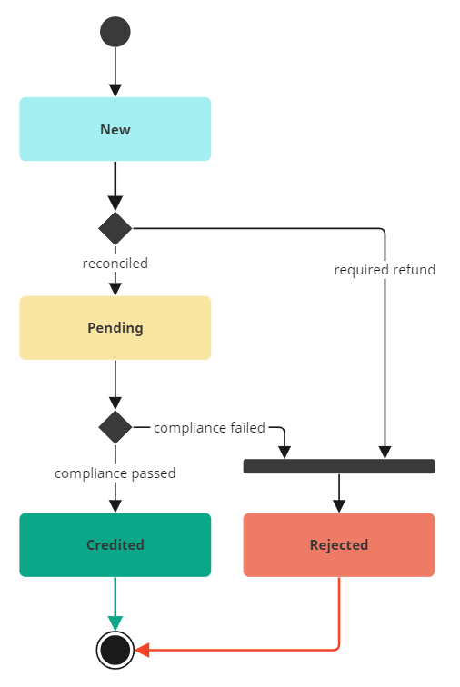 - Rejected - if compliance monitoring fails, funds will be returned to the sender.
